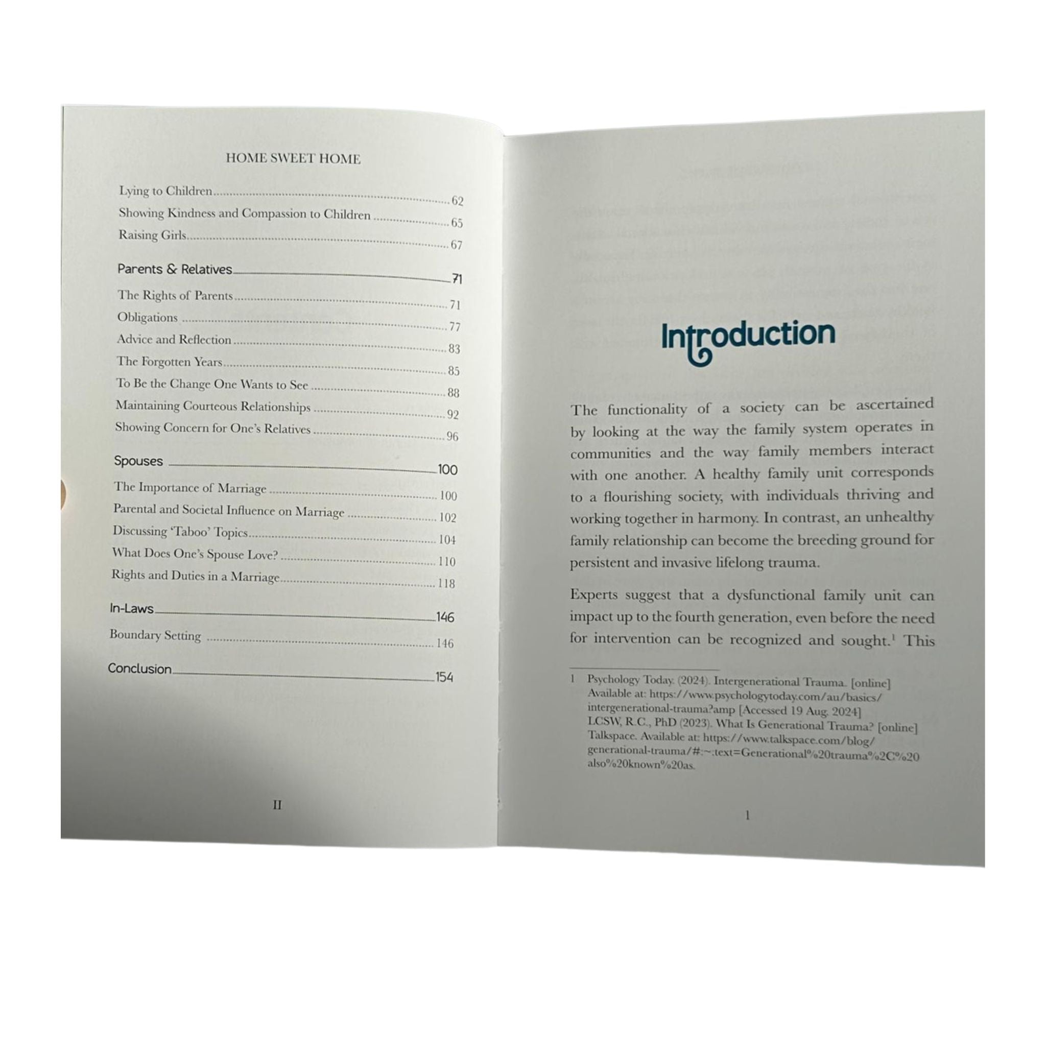 At its core, Home Sweet Home is about relationships: the power it has over one’s sense of peace and self and how knowing one’s rights and duties can empower one to confidently set boundaries. Most importantly, it discusses issues and conflicts that may exist within the home and how to ensure they are not mismanaged and handled disproportionately. It emphasizes the need to reflect and ponder over the origins of conflict and aims to make its readers more cognizant of the Islamic principles related to every relationship and interaction. In particular, there is a focus on the positive impact faith can have on smoothing out many common problems. This is underpinned by psychological concepts, the Qur’an and Hadith literature. By taking into account the various issues faced by many and the different types of relationships, a holistic understanding can be crucially obtained. Through the insights provided by this book, there is hope that it leads to better and more confident decisions being taken in the home so that family members can thrive together and support each other.