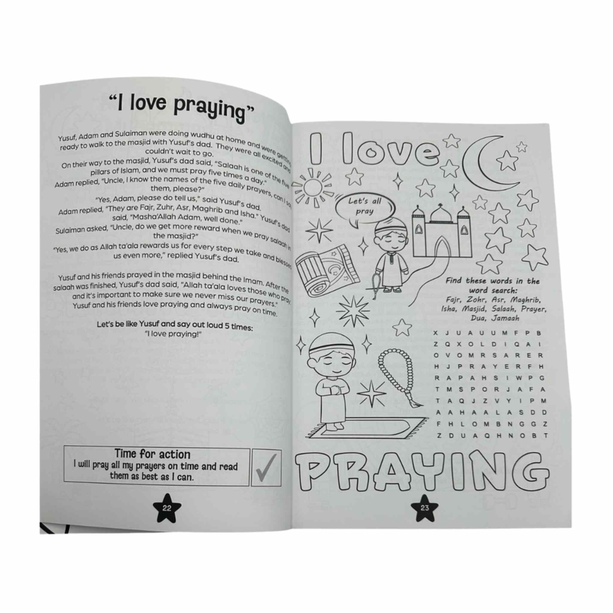 Our activity book encourages boys to read inspiring Islamic stories, learn essential values and enjoy a creative colouring experience that reinforces positive lessons. Each story is paired with a colouring or activity page to make learning interactive and memorable.