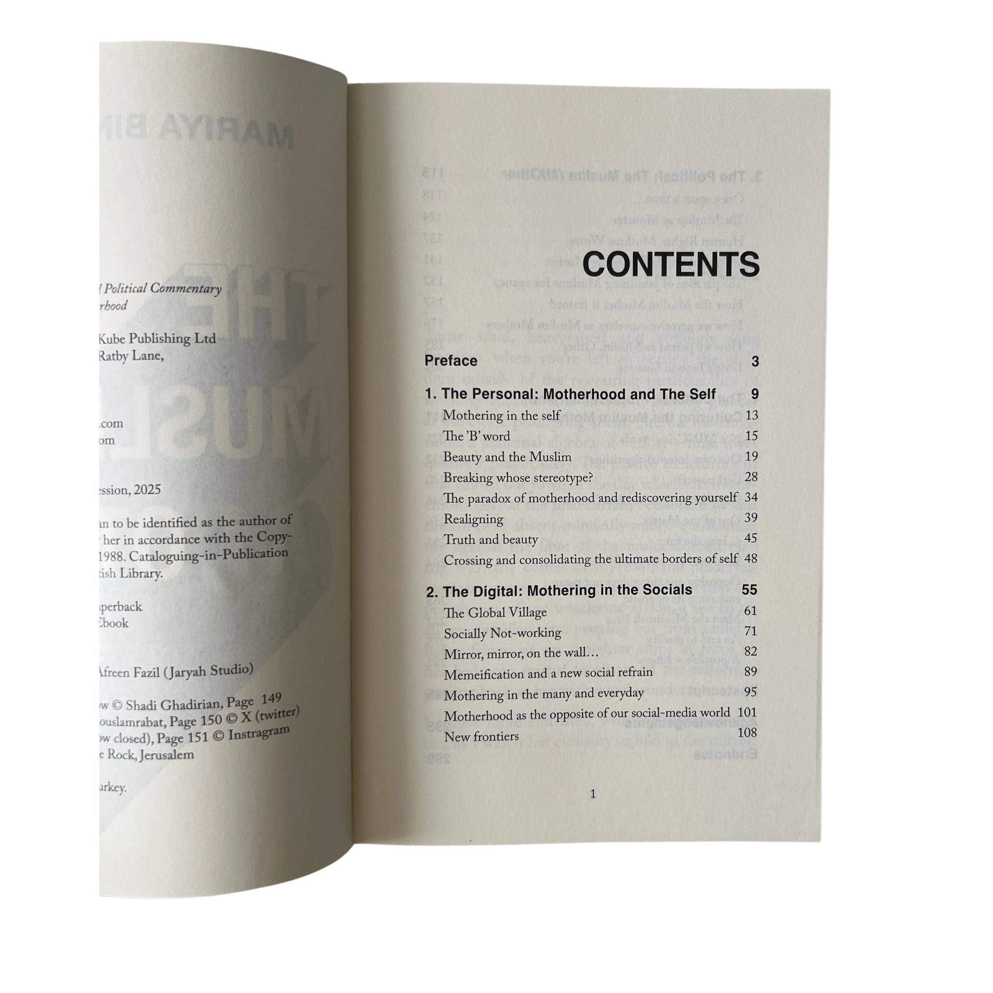 In The Muslim (M)other, Mariya bint Rehan offers an incisive and deeply reflective collection of essays that explore what it means to mother as a visibly Muslim woman in the twenty-first century. Drawing on her experience as a policy researcher, writer, illustrator, and mother of three, she examines the complex interplay of personal identity, digital realities, and political pressures shaping contemporary Muslim motherhood. From the constant gaze of social media and the anxieties of judgment—both within and outside Muslim communities—to political narratives that frame Muslim mothers and children as threats (such as Lord Pearson’s “womb politics” rhetoric), the book digs into the unseen burdens and contradictions mothers carry today